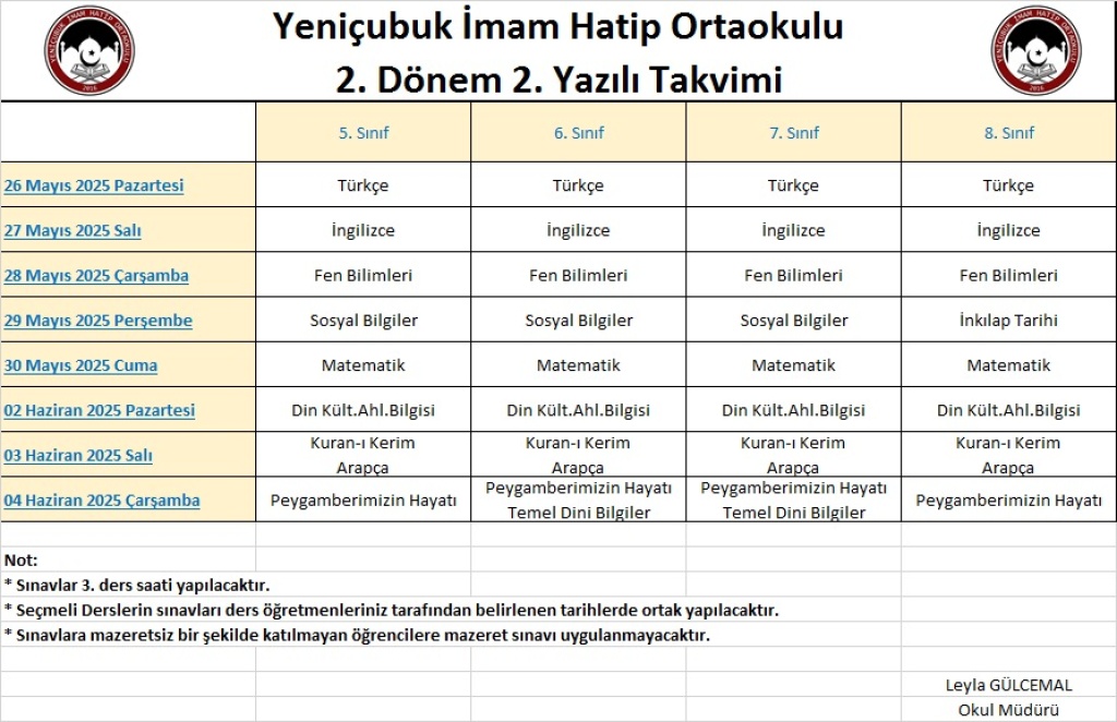 2024-2025 Eğitim Öğretim Yılı 2.Dönem 2.Ortak Sınav Takvimi Yayınlandı.Tüm öğrencilerimize başarılar dileriz.
